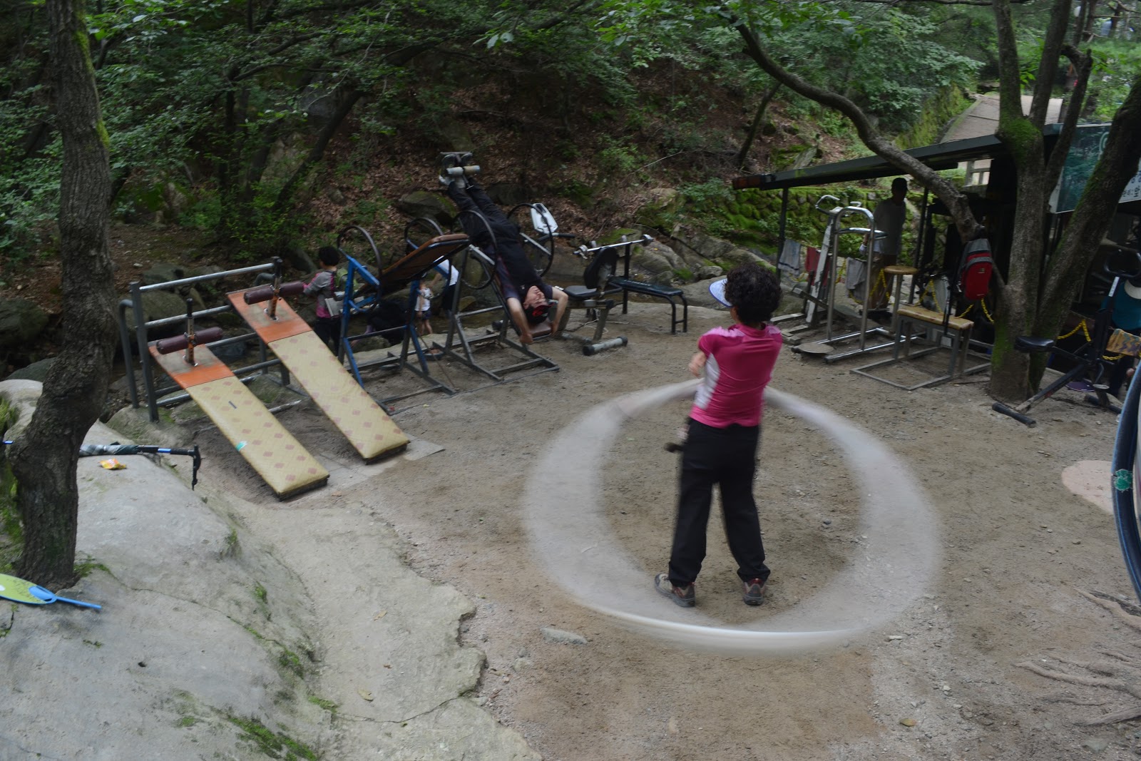 The work-out park. Hula hoop and the inversion table are very popular |